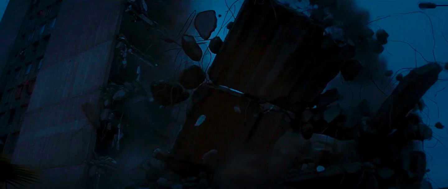 I won’t spoil the plot for you, but I can at least show you a very non-spoilery treat, which is the AI scene that everyone’s talking about (but not showing you). As Sarandos said, the scene shows a building collapsing. As you can see here, the showrunners kept the footage fairly dark, which I assume helps to obscure any shortcomings or potential uncanny valley artifacts.